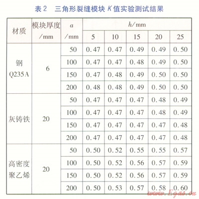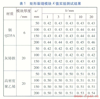 流量修正系數K的取值,主要取決于裂縫斷面形狀、管材。在實驗室需制作相關模型分類測試計算。建立不同裂縫形狀及大小、不同板材及厚度的模塊,通過對各種模塊的測試分析計算,得出流量修正系數K的取值范圍。