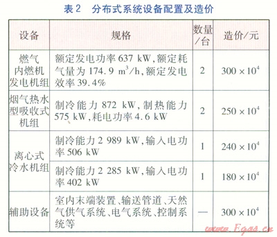 由以上分析可知,分布式系統(tǒng)的能效水平優(yōu)于直燃吸收式機組。但分布式系統(tǒng)增加r發(fā)電設(shè)備、離心式冷水機組等設(shè)備,使得分布式系統(tǒng)更為復(fù)雜,設(shè)備造價也相應(yīng)更高。下面以佛山地區(qū)某商業(yè)建筑為例,對兩種供能系統(tǒng)的經(jīng)濟性進行比較。