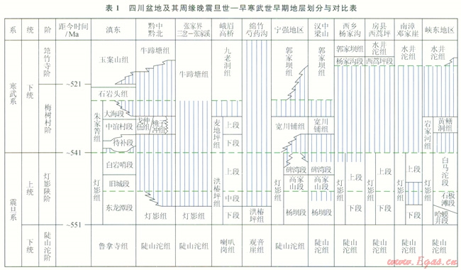 早寒武世早期地層包括梅樹村階與筇竹寺階,其地層劃分與對比見表1。