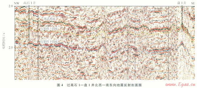 盆地內(nèi)西南側(cè)剝蝕較強烈,周公l、漢深1、老龍1井與威117井的下寒武統(tǒng)麥地坪組分別與燈影組上、下亞段不同層段相接觸,周公1井與漢深l井已剝蝕至燈影組下亞段,老龍l井與威117井燈影組上亞段白云巖層殘厚15.5m與31.55m。盆地中部剝蝕作用較弱,如高科l、安平1井與女基井燈影上段白云巖層分別殘厚365.5m、339.38m與240.8m。向川中東南側(cè)剝蝕作用逐漸增強,地震剖面顯示明顯的剝蝕削截現(xiàn)象(圖4),荷深1井燈影組上亞段白云巖層殘厚僅為2.2m。