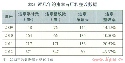 6家公司根據(jù)以上整理的各種措施和手段積極的推進了違章壓占的整改和預(yù)防工作,做到了一案一卷,取得了初步的成效。見表3。