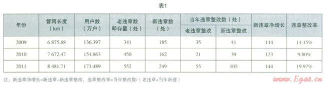 現(xiàn)取近3年6家燃氣公司管網(wǎng)及違章數(shù)據(jù)統(tǒng)計,見表1。