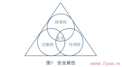 信息的安全風(fēng)險主要來自于信息的保密性、完整性和可用性。在企業(yè)中,信息可能會通過口頭、網(wǎng)絡(luò)、打印機、復(fù)印機、存儲設(shè)備等途徑不經(jīng)意地泄露。要避免重要信息的泄露,在信息的傳遞和保管過程中要把好關(guān);然后,還要防止信息被誤變更或被惡意變更,做到保護信息的完整性;最后,要做好信息源頭的安全保障,即要保障信息處理設(shè)備和信息傳遞渠道的高可用性。制定清晰的信息處理流程,建立滿足服務(wù)的完善運維保障,以及設(shè)法保持業(yè)務(wù)連續(xù)性管理都是保證信息高可用的重要措施。正是信息的這3個屬性結(jié)合才形成了信息的安全性,如圖1所示:
