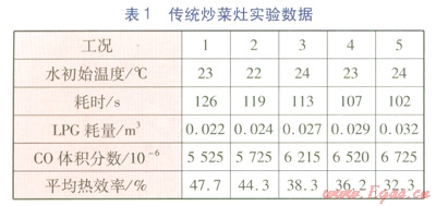 為驗證新型炒菜灶的性能,將其與傳統(tǒng)炒菜灶進行熱態(tài)對比實驗。實驗主要對比炒菜灶的熱效率、節(jié)能效果、排放特性。