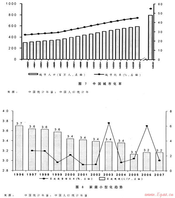 隨著我國城市化進(jìn)程不斷加快(見圖7)和城市家庭小型化(見圖8)趨勢,城市用氣人口和人均燃?xì)庀M(fèi)量快速增加(特別是二線城市的城市化和工業(yè)化)。目前城市平均氣化率程度僅為30%,市場遠(yuǎn)未飽和。