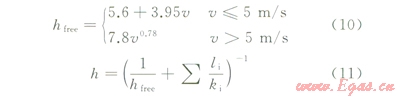 式中hfree為模板熱對流系數(shù),kJ/(m2·h·℃);v為風(fēng)速,m/s,文中取v為5.6m/s;li為混凝土模板厚度,文中取li為0.018m;ki為模板導(dǎo)熱系數(shù),文中取ki為0.837kJ/(m·h·℃)。