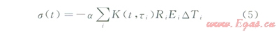式(5)對應(yīng)于第i時間段,a為混凝土熱膨脹系數(shù),1/℃;K(ti,t)為應(yīng)力松弛系數(shù);Ri為約束系數(shù),其值與構(gòu)件長高比及混凝土彈性模量比有關(guān);Ei為彈性模量,MPa;DTi為混凝土的內(nèi)外溫差,℃。