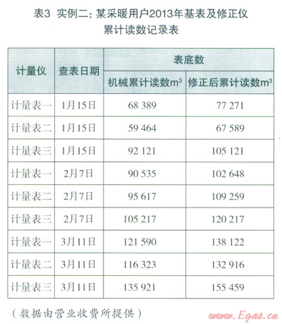 表3實例二采暖用戶2013年基表及修正儀累計湊數(shù)記錄表中,1月15日到3月ll日約2個月采暖區(qū)間(供暖期一般截止到3月15日),3臺計量表修正流量共計7651+8468+6538=22657m3,比不加體積修正儀流量體積多出14.7%按目前的采暖制冷價格2.67元/m3計算,此戶僅采暖季兩個月就增加氣費收入60494元。