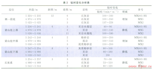3)石炭系前3m主要為石灰?guī)r、白云巖,可鉆性好。