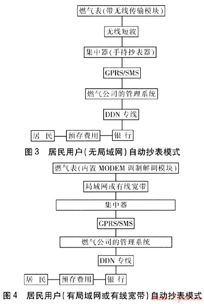 由購買氣量改為預(yù)存費(fèi)用,預(yù)存費(fèi)用的數(shù)值保存在燃?xì)夤镜臄?shù)據(jù)管理中心,以便根據(jù)燃?xì)鈨r(jià)格實(shí)時(shí)調(diào)整,避免燃?xì)鈨r(jià)格上漲前用戶囤氣給燃?xì)夤編頁p失。此方式綜合了國外的先進(jìn)技術(shù)和我國的國情,將成為我國城鎮(zhèn)燃?xì)饩用裼脩?、商業(yè)用戶今后計(jì)量收費(fèi)的發(fā)展趨勢。對于其他不適合預(yù)付費(fèi)方式的城鎮(zhèn)燃?xì)庥脩簦窈蟀l(fā)展的趨勢是自動(dòng)抄表。