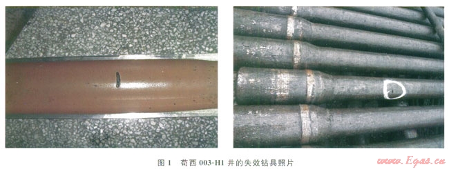 筆者從中國石油川慶鉆探工程公司(以下簡稱川慶鉆探)的2013年度鉆具疲勞失效分析會議注意到:茍西003-H1井[1]一共發(fā)生14次在鉆桿過渡帶消失區(qū)的刺穿失效,其中9次為連續(xù)發(fā)生的,更換不同廠家鉆具無效。而鄰近2口井采用同廠家的鉆具則沒有發(fā)生任何失效,不同的是該井造斜點僅為300m,但井斜不大且發(fā)生失效段狗腿度也不大。這種明顯的周期性鉆具累積疲勞破壞近年時有發(fā)生,主要與井身軌跡復(fù)雜有關(guān)[2],應(yīng)重點考慮淺井段造斜作業(yè)的影響。以此作為一種失效類型進行統(tǒng)計,力求分析得出結(jié)論,既可以為施工作業(yè)進一步預(yù)防和避免此類失效提供思路,也可以為設(shè)計部門借鑒。
