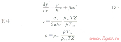 在平面徑向流情況下,氣體高速非達(dá)西滲流的速度方程[11-13]為: