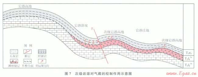 巖溶凹陷內的次級巖溶微地貌單元中的巖溶斜坡是尋找工業(yè)氣井的最有利區(qū)(圖7)。