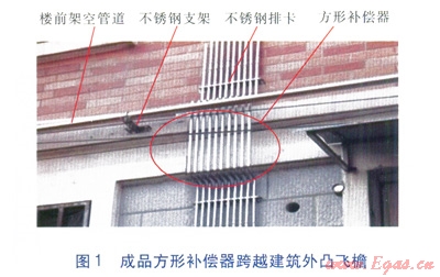 當(dāng)燃?xì)夤艿佬枰M(jìn)行溫度補(bǔ)償或跨越建筑物的沉降縫、伸縮縫、建筑外凸飛檐時(shí),應(yīng)采取補(bǔ)償措施。方形補(bǔ)償器是常見的自然補(bǔ)償措施之一,可由4個(gè)90°彎頭制作而成(安裝后共有8個(gè)機(jī)械連接點(diǎn)),但在實(shí)際應(yīng)用時(shí),由薄壁不銹鋼彎頭現(xiàn)場(chǎng)制作成的方形補(bǔ)償器很難做到安裝整齊,效果很不美觀且施工耗時(shí)較長(zhǎng)。