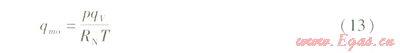 排氣出口體積流量理論計算時基本考慮為常量,且存在關(guān)系: