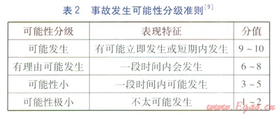 可能性分級(jí)準(zhǔn)則見表2,事故后果分級(jí)準(zhǔn)則見表3。