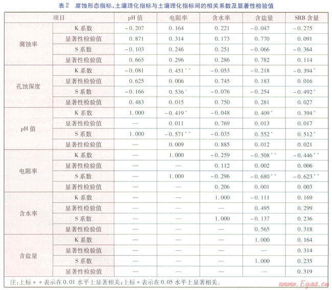 相關(guān)性分析是研究兩個及以上變量之間相關(guān)程度以及用一定函數(shù)米表達現(xiàn)象相互關(guān)系的方法。在研究土壤腐蝕問題,建立腐蝕模型時,需確定土壤理化指標(biāo)對金屬腐蝕程度的影響程度(或相關(guān)性),并將那些對土壤腐蝕性影響較大的理化指標(biāo)都包含在腐蝕模型中,才能準(zhǔn)確地對土壤腐蝕性評價和管道防腐措施進行指導(dǎo)。