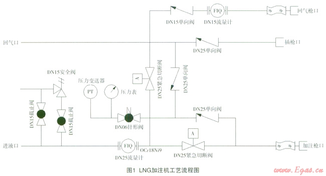 現(xiàn)代化的液化天然氣(LNG)加注機設(shè)備一般由電控系統(tǒng)、質(zhì)量流量計、管路系統(tǒng)3部分組成。LNG加注機具有新穎的人機操作界面、可靠的IC卡收費及結(jié)算等先進功能,以及有關(guān)網(wǎng)絡(luò)化管理的標準接口。在電氣控制上都采用了防爆結(jié)構(gòu),符合國家防爆檢驗機關(guān)的相關(guān)要求。