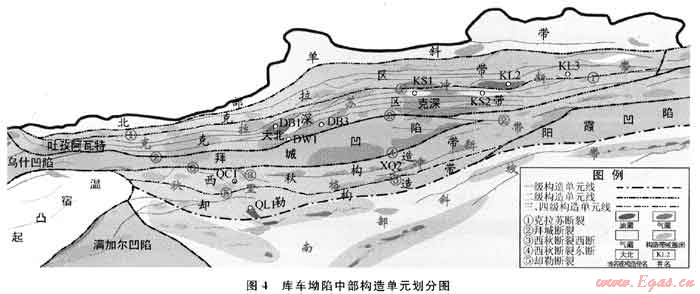 關(guān)鍵詞:塔里木盆地;庫車坳陷;構(gòu)造單元;劃分;構(gòu)造演化;斷裂;油氣富集規(guī)律;勘探方向