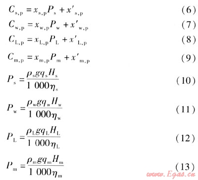 式中Cs,p、Cw,p、CL,p、Cm,p——海水泵、工質(zhì)泵、溶液泵、中介水泵的價格,元