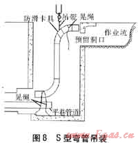 S型彎管吊裝見圖8。井壁豎管和兩端彎頭在地面上預制完成,經(jīng)無損檢測、防腐補口、補傷合格后,進行吊裝。吊裝方法同L型彎管的吊裝方法,在焊接豎井下方管口時一定要把握好管道的方向。