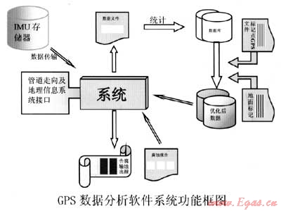 為了將記錄儀記錄的數(shù)據(jù)同慣導系統(tǒng)的數(shù)據(jù)歸一化管理,必須通過軟件將記錄數(shù)據(jù)中的每一點位置轉(zhuǎn)換成GPS坐標,腐蝕(變形)檢測數(shù)據(jù)分析軟件應該具有與GPS分析軟件之間的數(shù)據(jù)接口,為現(xiàn)場開挖驗證提供方便可靠的數(shù)據(jù)。功能定義為: