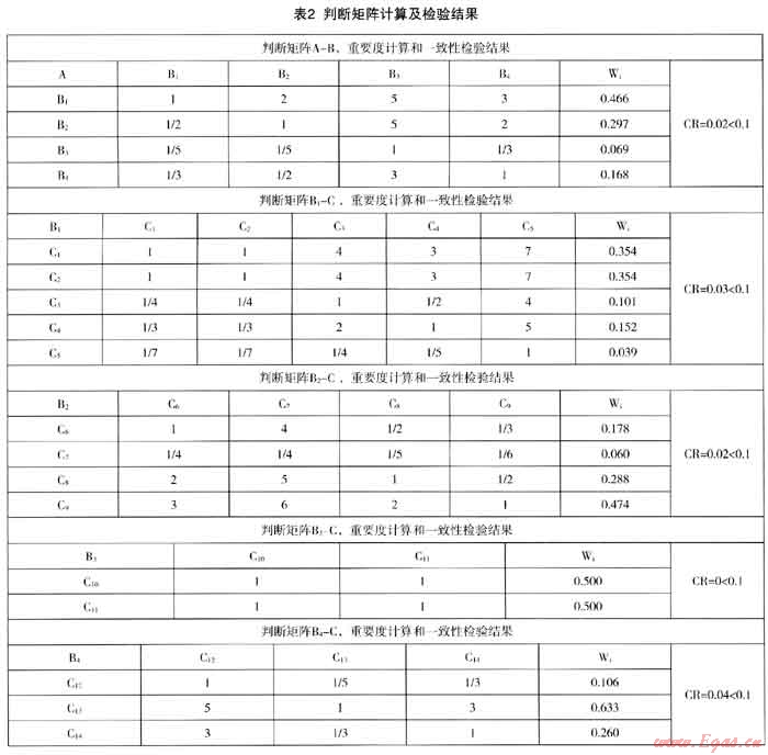 我們在調研中反復向業(yè)內(nèi)專家咨詢,綜合各位專家意見,并結合調研數(shù)據(jù),建立了判斷矩陣,并根據(jù)層次分析的一般方法(和積法),計算各要素的權重和進行一致性檢驗。限于篇幅,計算過程不詳細敘述,結果見表2。