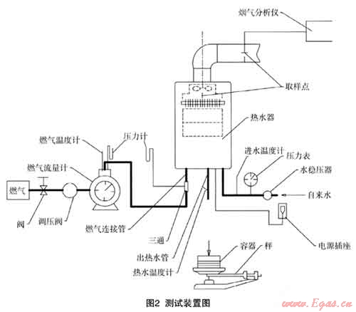 (1) 選定待測(cè)熱水器,進(jìn)行安裝,凋試。對(duì)于非恒溫機(jī),將燃?xì)忾y門開至最大,調(diào)節(jié)出水溫度比進(jìn)水溫度高40±1℃,當(dāng)不能調(diào)節(jié)至此溫度時(shí),在熱水器溫度可調(diào)范圍內(nèi),淵節(jié)至最接近的溫度。對(duì)于恒溫機(jī),將溫度設(shè)定在最高狀態(tài),適當(dāng)提高進(jìn)水樂力,使熱水器在最大負(fù)荷狀態(tài)下工作;