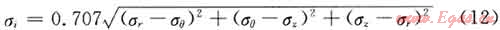根據(jù)Von-Mises屈服強(qiáng)度準(zhǔn)則,用三軸應(yīng)力來(lái)校核管柱安全性,應(yīng)力計(jì)算公式為: