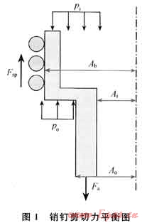 1) 對(duì)于第一種工況,封隔器坐封完成后,繼續(xù)增壓使伸縮短接剪斷銷釘,伸縮短接進(jìn)入工作狀態(tài)。銷釘受力情況如圖1所示,剪斷銷釘所需要的載荷(Fsp)為[6]: