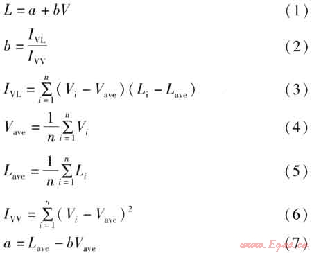 L=-15136.2+539.88×10-8V (8)