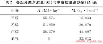 根據(jù)式(2)可以求得單位質量高熱值(Hm)為55.058MJ/kg。