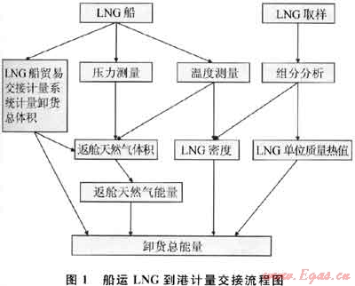 到港LNG的計量是由獨立檢驗第三方或在獨立檢驗第三方的見證下完成的。歷時50年的發(fā)展,LNG到港貿易交接已漸漸地形成了一套完整、精確的計量程序,其計量交接流程圖如圖1所示。