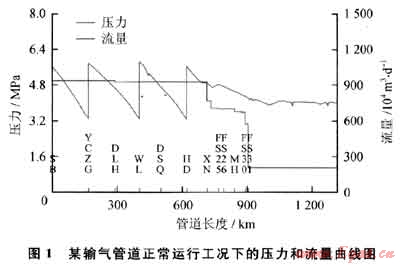 輸氣管道的運(yùn)行工況可以分為正常工況和異常工況。。正常工況包括了管道啟輸、啟停壓縮機(jī)組、壓縮機(jī)組切換、越站輸氣、分輸用戶的氣量調(diào)整和氣源進(jìn)氣量的調(diào)整等。異常工況包括了管道泄漏(爆管)、管道堵塞(冰堵)、干線截?cái)嚅y意外關(guān)斷、運(yùn)行機(jī)組故障停運(yùn)、通訊中斷和站場(chǎng)故障停運(yùn)等。
