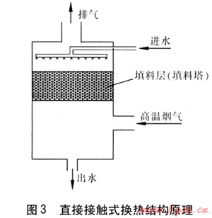 直接接觸式換熱是指將燃燒后的高溫煙氣直接與水接觸進行換熱。其結構原理見圖3。