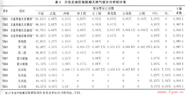 其次,長(zhǎng)興組天然氣中普遍含有硫化氫,而陸相及雷口坡組天然氣中則不含硫化氫。從表1中明顯可以看出,長(zhǎng)興組天然氣中C02含量較高,這可能是由于在測(cè)試過(guò)程中采用酸壓測(cè)試,酸與碳酸鹽巖反應(yīng)產(chǎn)生C02的緣故,導(dǎo)致含有較多的C02氣體。