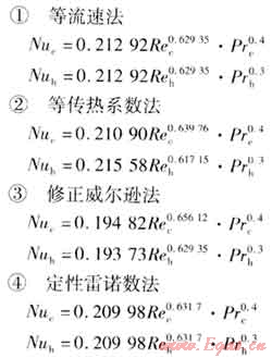 本文選取等雷諾數(shù)法、等流速法、等傳熱系數(shù)法、修正威爾遜法、定性雷諾數(shù)法進行理論分析。