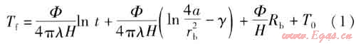 根據(jù)線熱源理論,埋管內(nèi)流體的平均溫度計算式為: