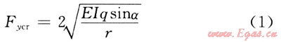Fycr表示正弦屈曲臨界載荷;E表示楊氏模量;I表示油管的慣性矩;α表示井斜角;r表示油管任意位置處的半徑;Fyck表示螺弦屈曲臨界載荷;Fy表示有效軸向力;ro表示油管外徑;ri表示油管內徑;D表示管柱名義外徑;