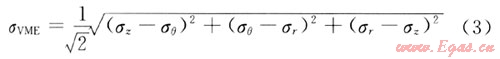 采用Von Mises等效應力進行計算,考慮軸向、徑向和周向應力。三軸應力計算公式如下:
