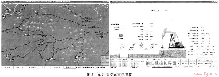 煤層氣自動(dòng)化監(jiān)控系統(tǒng)由多人協(xié)作同時(shí)開發(fā)完成,組成由21臺(tái)工控機(jī)組成的“兩級(jí)三地”遠(yuǎn)程監(jiān)控網(wǎng)絡(luò),分布在方圓100km2的山區(qū),最遠(yuǎn)處距監(jiān)控點(diǎn)70km,覆蓋了整個(gè)煤層氣由井、站、處理廠工藝流程全過程。圖2為某個(gè)區(qū)域單井監(jiān)控界面示意圖。
