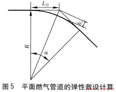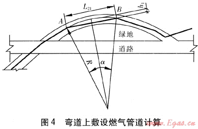 彎道上敷設(shè)燃?xì)夤艿烙?jì)算見(jiàn)圖4。