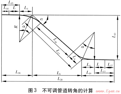不可調(diào)管道轉(zhuǎn)角的計(jì)算見(jiàn)圖3。
