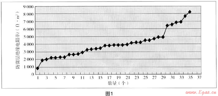 35個測點的防腐層電阻率從826Ω·m2~8218Ω·m2,管道的外防腐層電阻璋弓啷分在3000Ω·m2~5000Ω·m2,平均值為3996Ω·m2,說明管道防腐層等級基本上為“差”。
