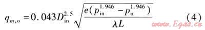 引入流量效率因數(shù)e,反映局部阻力的影響。無局部阻力的直管段取1.00,運行較好的管段取0.95,運行一般的管段取0.92,運行不好的管段取0.85。計算管段出口蒸汽質(zhì)量流量qm,o的計算式為: