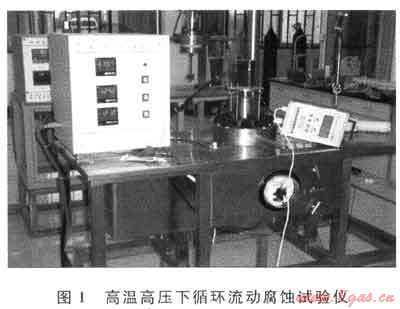 實驗儀器為西南石油大學“油氣藏地質及開發(fā)工程”國家重點實驗室自主設計建造的高溫高壓下循環(huán)流動腐蝕試驗儀(圖1),上述評價是在該儀器上完成的。儀器最大氣密封工作壓力70MPa、最高工作溫度180℃、容積8L、整體C276合金鍛造、藍寶石視窗觀察流動狀況。兩個功能流道可模擬研究流速、氣流持水率、元素硫是否附著于試片等流動因素的腐蝕,本實驗通過高溫高壓釜視窗觀察不同流速條件下,模擬在含有地層積水和攜水條件下的腐蝕情況。
