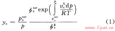 式中戶:pssat表示固相硫的飽和蒸汽壓,Pa;фssat表示飽和蒸汽壓下固相硫的逸度系數(shù);фsg表示氣相流的逸度系數(shù);vsS表示固相硫的摩爾體積,m3/mol;R表示普適氣體常數(shù);T表示絕對溫度,K;p表示系統(tǒng)壓力,Pa。