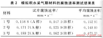 在溫度為120℃,壓力為60MPa,含地層積水條件下的各個試件的腐蝕情況,其統(tǒng)計結果見表2。