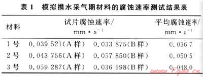 在溫度為120℃,壓力為60MPa,含地層攜水條件下的各個試件的腐蝕情況,其統(tǒng)計結果見表1。