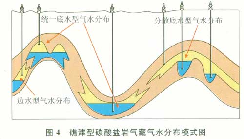 針對(duì)這些問(wèn)題,綜合巖性、電性、物性及微觀孔隙結(jié)構(gòu)的研究,在儲(chǔ)層發(fā)育規(guī)律研究的基礎(chǔ)上研究氣藏氣水分布特征,弄清氣水分布控制因素,建立氣水分布模式有利于制定合理的碳酸鹽巖氣藏開(kāi)發(fā)方式,確定礁灘型碳酸鹽巖氣藏高效開(kāi)發(fā)技術(shù)對(duì)策,保證這一類(lèi)型氣藏的高效開(kāi)發(fā)。